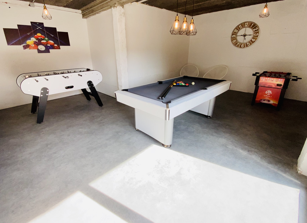 Salle de jeux avec billard , baby foot adulte, baby foot enfant , coin lecture, ouvert tous les jours de 8 h à 22 h .